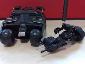 The box comes with 2 things, the batmobile + batman riding the batpod.
